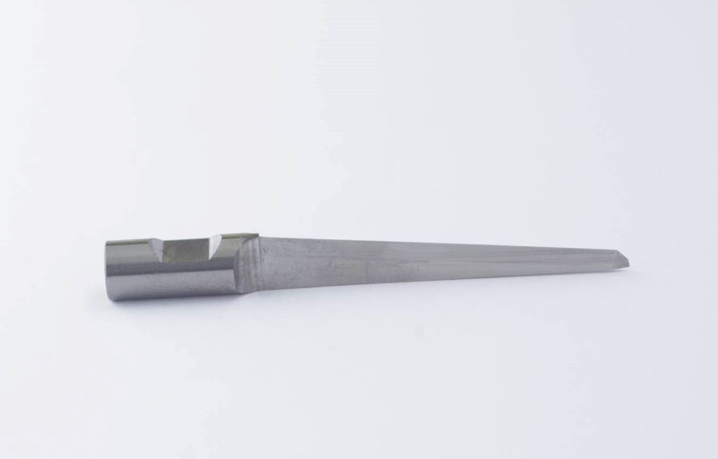 This is a high-quality tungsten blade with a 8° cutting angle. The flattened tip increases the cutting speed and protects PVC cutting underlays.
